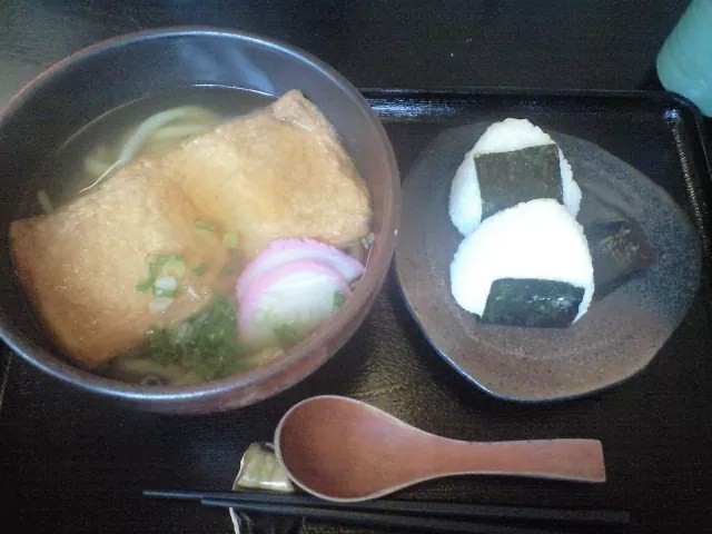 きつねうどん+おにぎり 550円+150円。(^_^)v