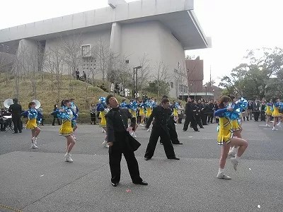 式典後、応援団とチアガールが新入生にエールを送っていました。(^_^)v